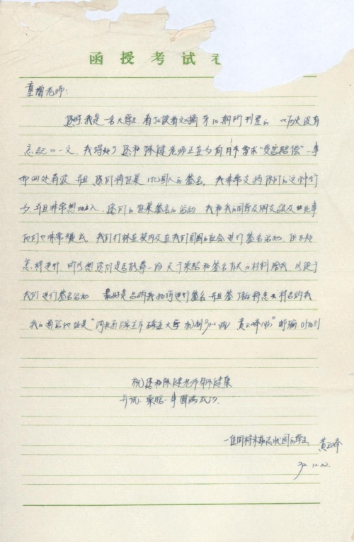 细节:看到《历史没有忘记》一文知道你们在为索赔奔走征集签名我非常敬佩你们也想参与到组织中去,支持索赔。备注:信封丢失