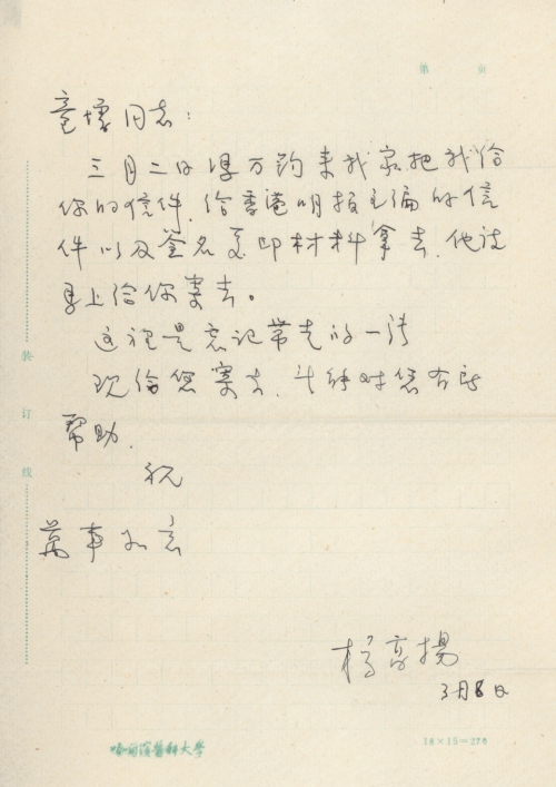 写信日期:3月8日(信封丢失)