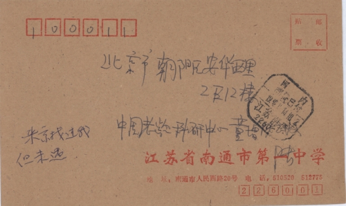 写信地址:江苏省南通市