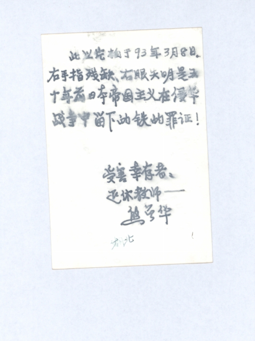 为此,我以自己亲身受害愤怒控诉日本帝国主义在侵华战争中所犯下的滔天罪行。