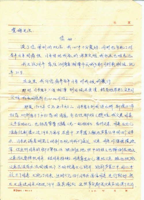 在这里,我向您痛斥当年日军对我娘的暴行。