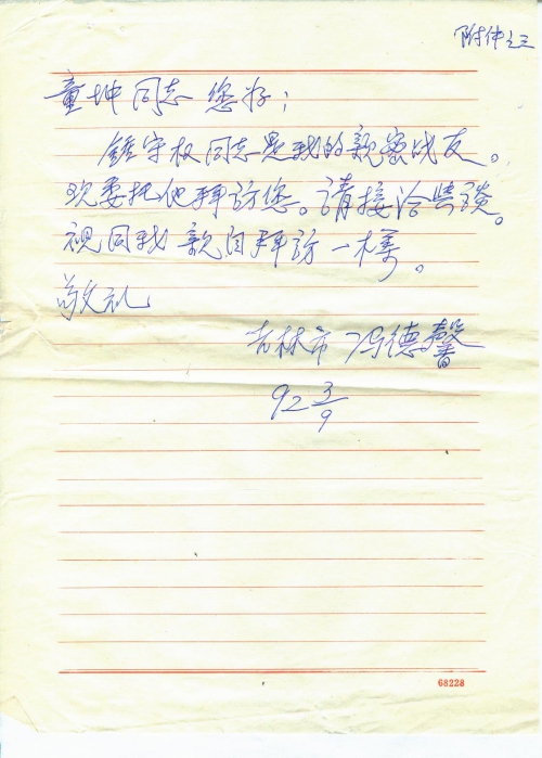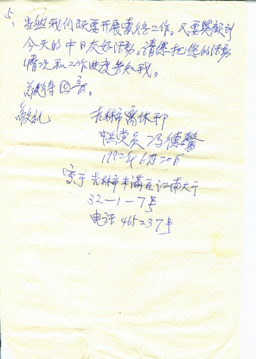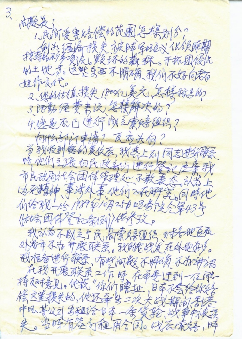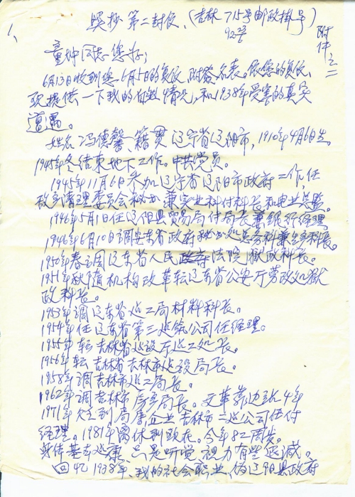 6月13日收到您6月5日的复信,附签名表。依您的复信,现提供一下我的自然情况和1938年受害的真实遭遇。