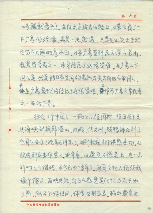 With great difficulties, we three reached Andong, China (now Dandong) from Shimonoseki, Japan by crossing Pusan, Seoul and Lutheran of North Korea and the Yalu River. We instantly felt comfortable after returning to the motherland. It has been over 40 years since the series of events and torture happened, from being forced to work as a slave labor in Japan, to being held in a prison and to experiencing the atomic bomb attack. After I just returned home, other people said I was like a fool because I was slow. I myself felt my memory, brain and physique were worse than before. It’s often said that the people who have experienced atomic bomb attacks could suffer from an atomic disease, which affects not only themselves but their offspring. After I returned to China, I had a physical examination. The results showed that apart from a bad memory, my heart, red and white blood cells, liver, lung and stomach, etc. were all abnormal. I’ve received treatment for dozens of years. I haven’t been able to work since the 1970s and have spent a lot of money for treatment. The suffering is unspeakable. Now, my illness is becoming more serious as I am getting older. I am still shadowed by the atomic disease.