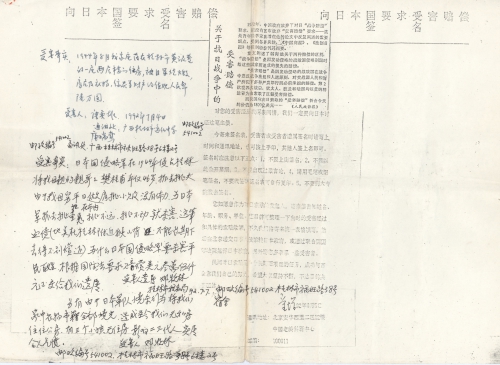 您如愿意作为对日索赔的发起人,请来信告知姓名、年龄、职务、单位。您目前可整理一下当时的受害经过和具体的索赔数额,不久我们将寄来统一表格填写,然后在北京递交日本大使馆转日本政府,或通过联合国国学法院起诉日本政府,另外请您多联系一些受害者。