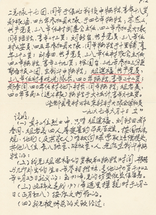(二)我兄组进福的岁数和牺牲时间,根据与几个外生的生日,年岁相推算,是他二十岁于1942年4月23日就义的;至1971年,兄的坟墓依然保留着。