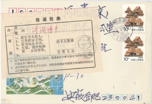 安徽省合肥市金笔总厂叶枫敬缄