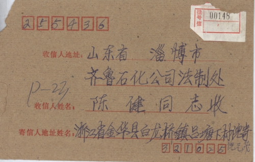 写信地址:浙江省金华市