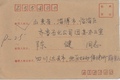 Address: Jiang Zhinan care of Xue Youwei, Maternity and Child Health Care Center, Da County, Sichuan Province. Postal code: 635000