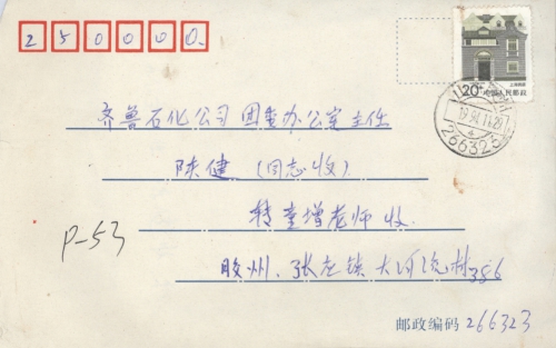 写信地址:山东省胶州市