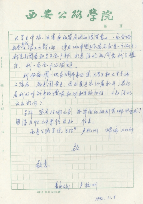 写信日期:1992-11-05